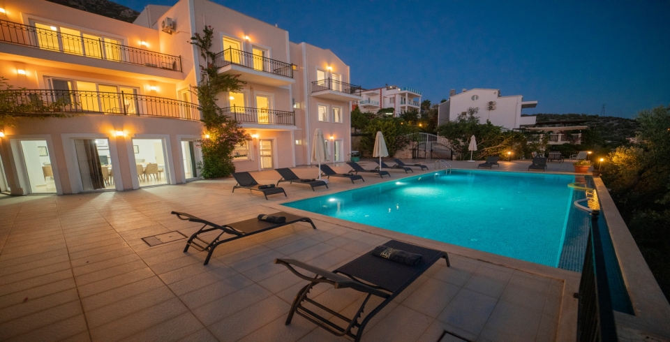Villa Abis is located in the Kiziltas area of Kalkan. The property has 7 bedrooms and can accommodate 14 people. It has been designed with modern stylish furniture and has a magnificent sea view. The property is very suitable for larger families or groups of friends. Villa Abis is located close to the centre of Kalkan and the beach. It is approximately a 20-25 minute walk to the centre of Kalkan, restaurants, shops and beach clubs.