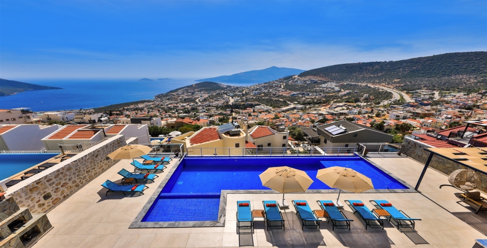 Villa July is located in the Kiziltas area of Kalkan. The villa has 5 bedrooms and capacity of 10 people, among one of our best deal villas ideal for larger families and groups of friends. It has magnificent views of the sea, Mouse and Snake Islands and the city views. You can admire the unique sunsets of Kalkan in its large pool terrace area. It is only 4-5 minute drive from town centre, shops, restaurants and beaches.