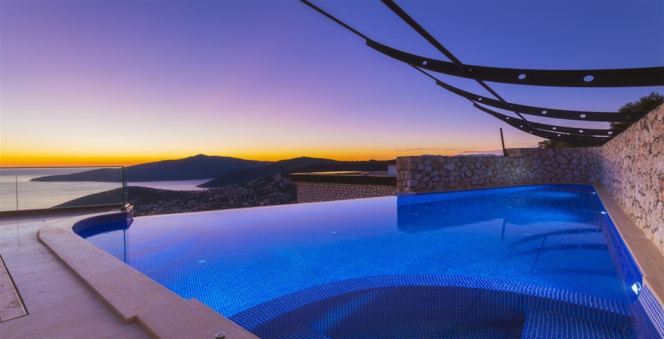 Villa Kaya Ev is part of a group of 3 neighbouring villas, beautifully situated above Kalkan, offering stunning views over the old town and across the deep blue bay. You might need wings to achieve a more breathtaking vantage point of the Turquoise Coast than this one. Kaya Ev provides ample opportunities for enjoyment, featuring a sizeable pool positioned on one side of the villa for added privacy, a generous terrace, and sliding glass doors that enable views to be appreciated from almost every room.The villa has been completed to an exceptionally high standard, incorporating many natural materials and soothing tones of indigo and terracotta that complement the surrounding landscape. The...