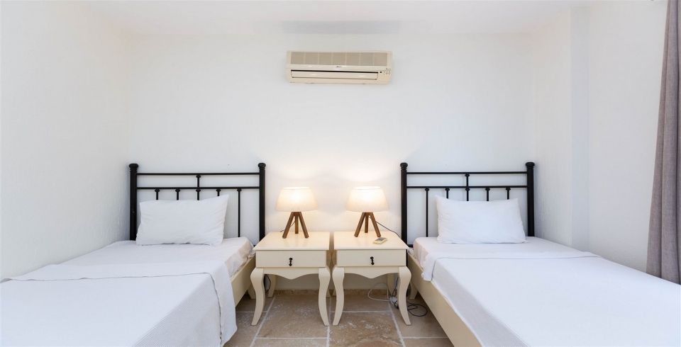 3. Bedroom : A double bed, bedside table, air conditioning, wardrobe, vanity table, bathroom and WC. Located on the first floor, shares this floor's bathroom with second bedroom.